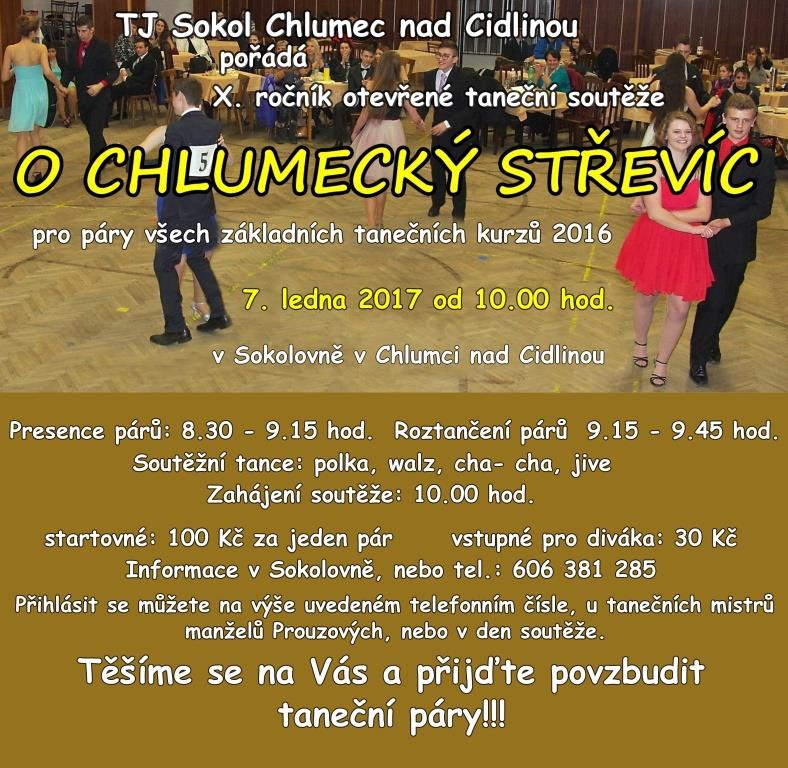 X. ročník taneční soutěže O Chlumecký střevíc - od 10:00 - 100 Kč za pár